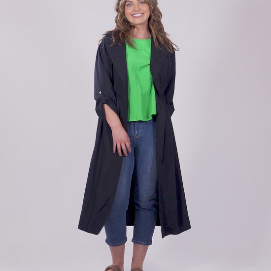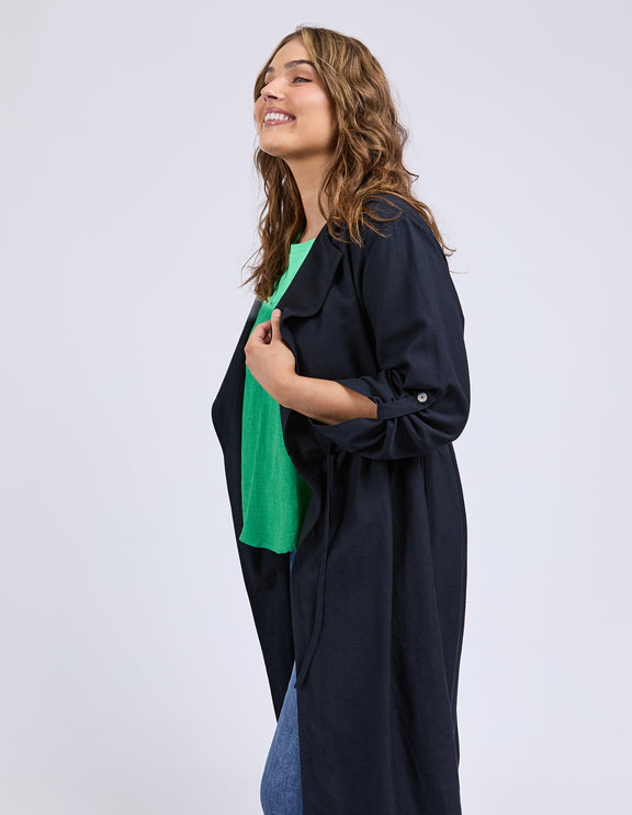 Meet your new favourite layering piece – the Linen Trench in Navy. Designed with a lightweight feel, relaxed fit, and adjustable drawcord waist, this versatile jacket offers effortless style for any day of the week.