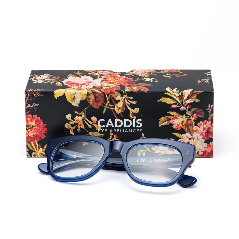 Introducing 'Miklos' Minor Blues, Possibly the one model that has the largest audience when it comes to fit. It’s like the elastic waist pant of eyewear…which is really degrading to the Miklos, but we’re just trying to make a point. People with larger faces like the thickness of the frames, and how solid they feel. Customers with smaller faces also like wearing a frame that stands out. Just depends on what you’re into. All Caddis Readers come boxed, with a bag and cleaning cloth. Handcrafted acetate designs utilizing state of the art CNC and finishing for fit, function, and durability.
