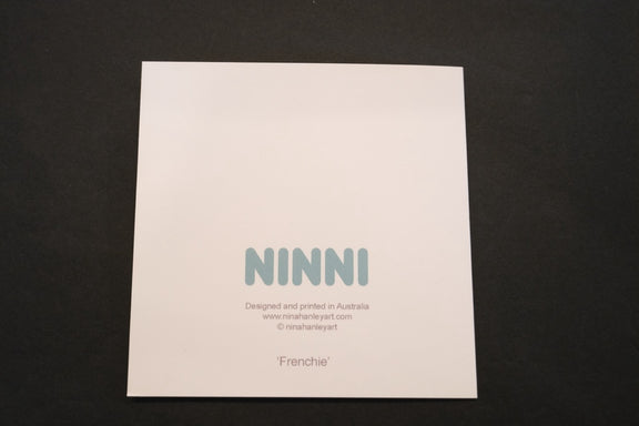 The Ninni “Frenchie” Art Card features a French bulldog dressed in characterful attire, finished with skull button details. Playful and slightly irreverent, this artwork balances humour with carefully considered visual detail.