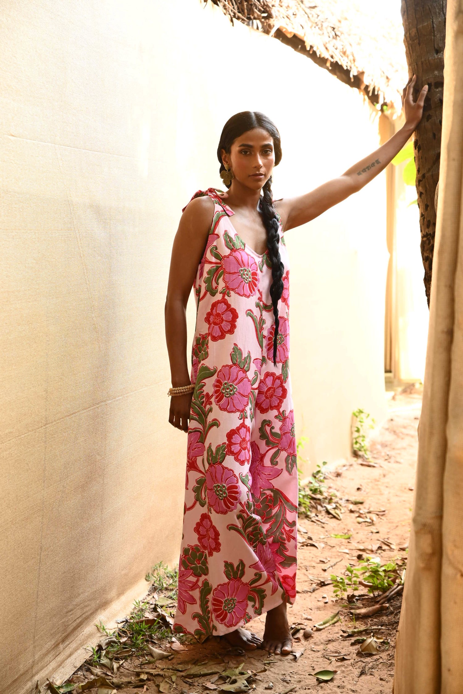 Women’s linen blend jumpsuit in Pink Ibiza print