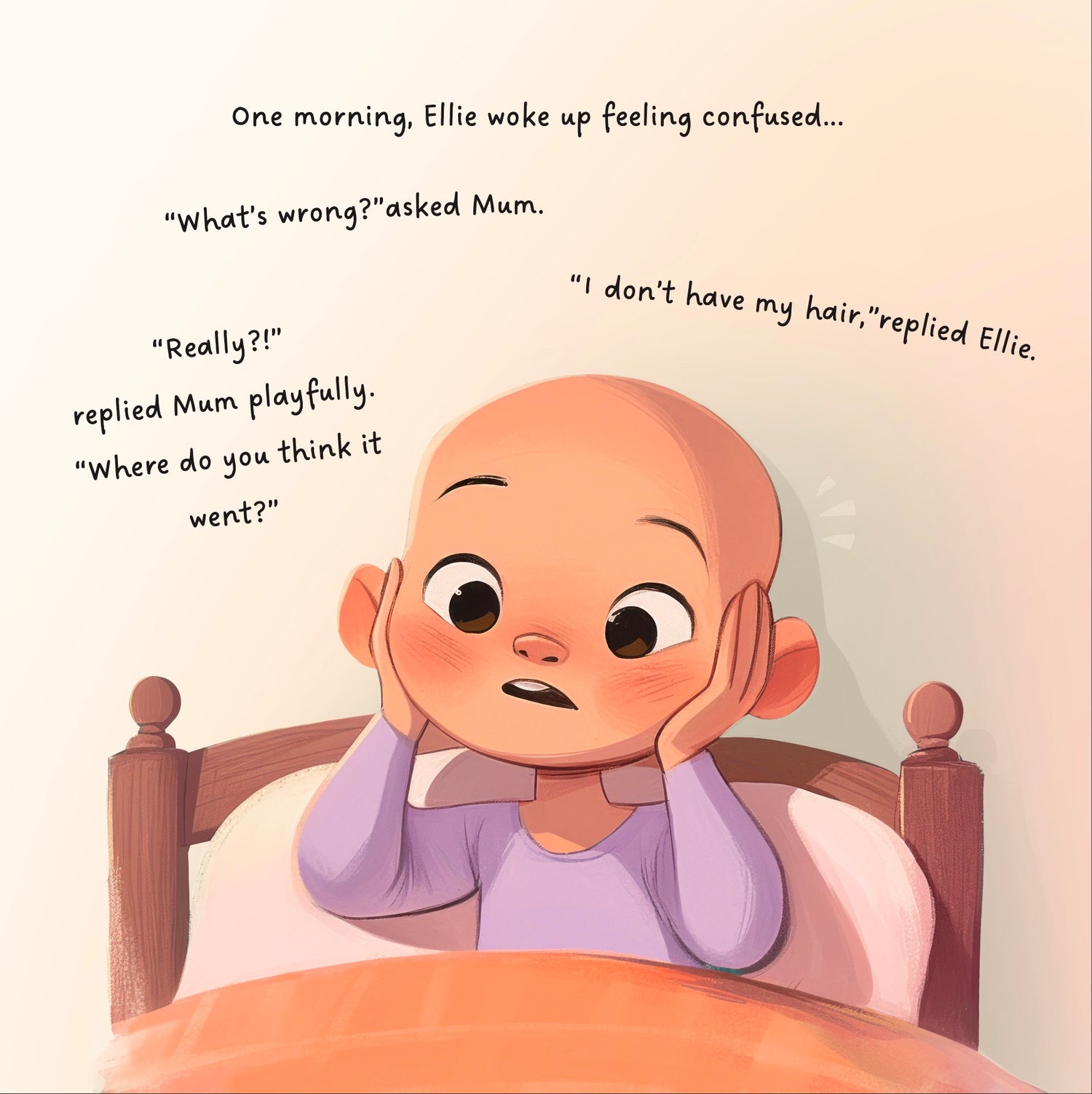 When Ellie wakes up without her hair, she and her mum dream up magical and funny reasons why it might have disappeared — from fairy missions to superhero capes.