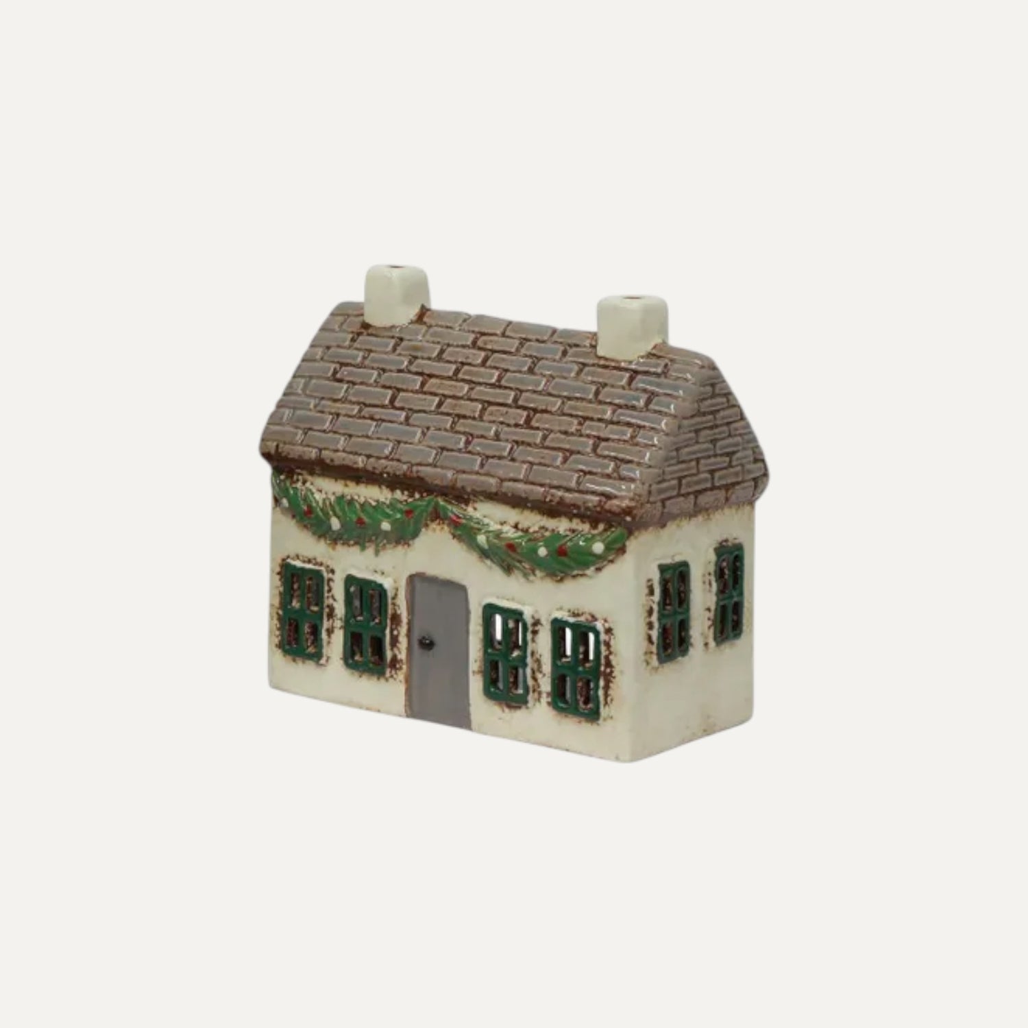 Hand-painted ceramic cottage with festive swag design