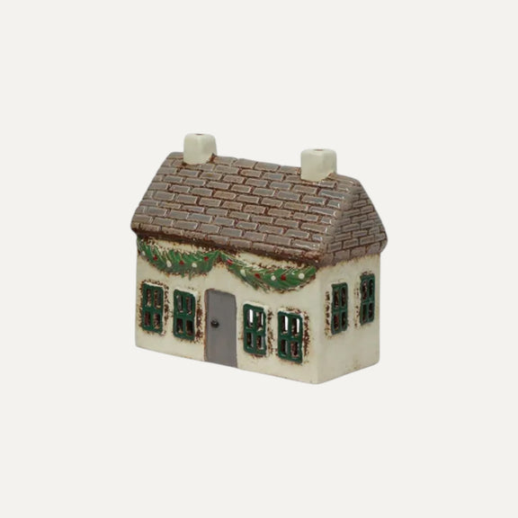 Christmas Tea Light Cottage | With Swag | Ceramic